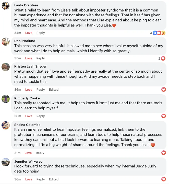I’ve stood right where you are: caring deeply about the animals in my hands, investing time and money into more training, doing all the things… yet still feeling like maybe I didn’t measure up. Over the years, I’ve found practical, science-backed ways to work with those imposter feelings- not to push them away or fight them, but to gently turn down their volume so they don’t get to run the show.